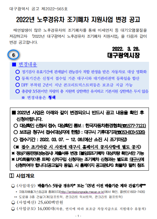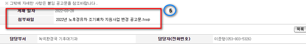 ⑤ 노후경유차 조기폐차 지원사업 변경 공고문을 다운로드합니다.
