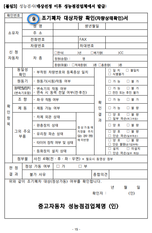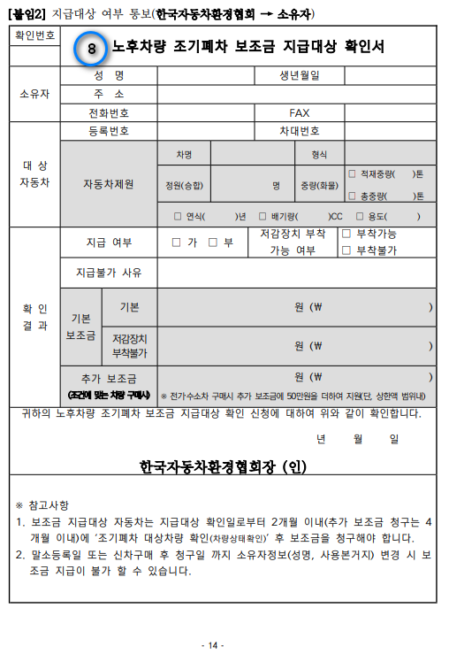 ▲조기폐차 보조금 지급 대상 확인서 첨부