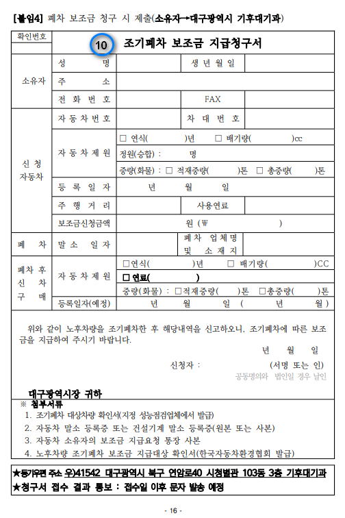 ⑩ 조기 폐차 보조금 지급 청구서 (폐차)