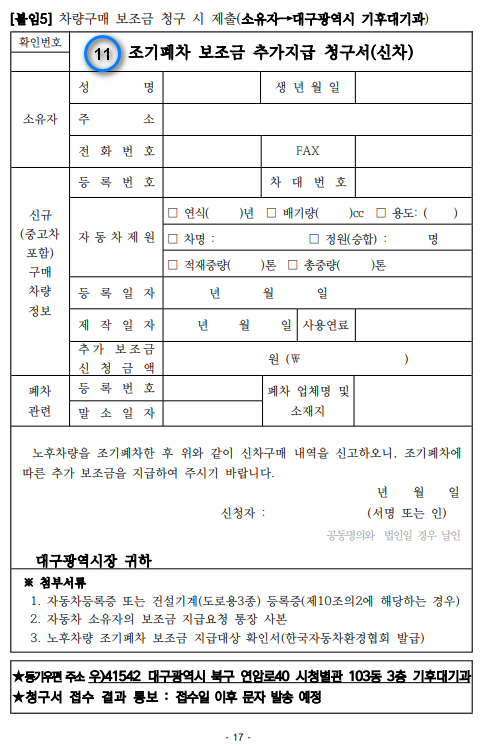 (11) 조기 폐차 보조금 추가지급 청구서 (신차)