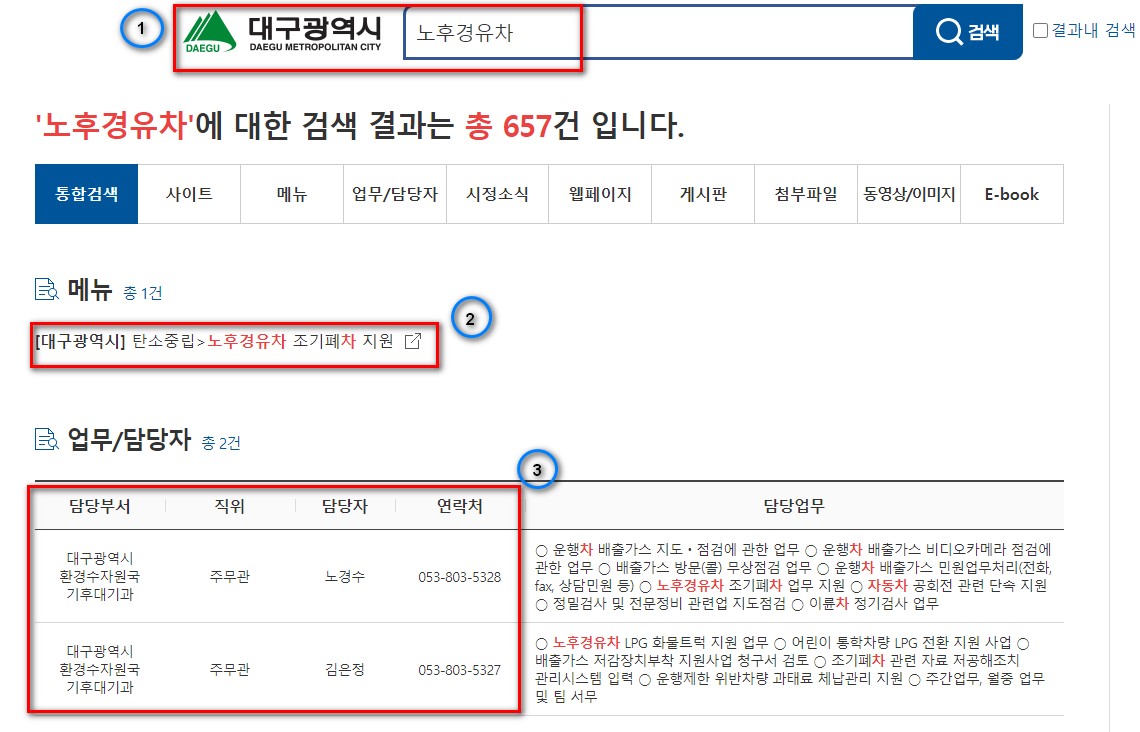 ① 지자체 홈페이지에서 '노후경유차 '검색합니다.